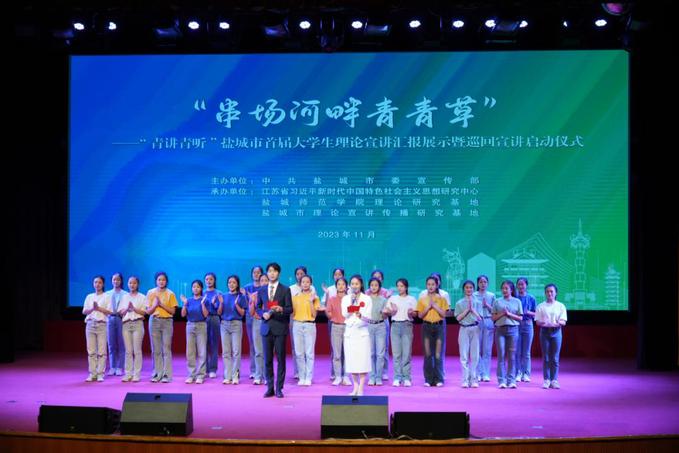11月11日上午,“串场河畔青青草”——“青讲青听”盐城市首届大学生宣讲展示暨巡回宣讲启动仪式在我校新长校区举行。盐城市委常委、宣传部部长陈卫红出席并讲话。学校党委书记戴斌荣致辞,省委宣传部理论处处长刘必好,市委宣传部常务副部长、市新闻出版局(市版权局)局长薛万昌出席活动。