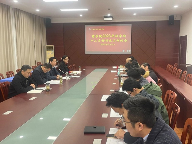 12月13日上午,商学院在大会议室召开十二月份行政工作例会。学院党委副书记、院长殷凤春,党委副书记秦圣阳,副院长钱英、王力,各系部负责人参加会议。会议由殷凤春主持。