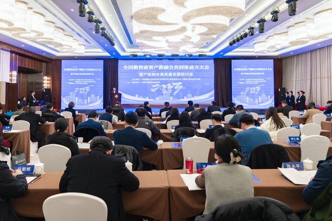 12月23日,全国数智商贸产教融合共同体成立大会暨产教融合高质量发展研讨会在江苏无锡举行。本次大会由中电国泰(江苏)数字技术有限公司、南京财经大学、无锡商业职业技术学院等单位共同发起,无锡商业职业技术学院承办,中国产学研合作促进会指导和支持,全国240多家高校和相关单位的500多名专家、特邀嘉宾、企业代表参会。国家商务部电子商务司原副司长、巡视员(正司级)、中国电子商务商协会联盟主席聂林海致辞。会议由无锡商业职业学院校长徐汉文主持。