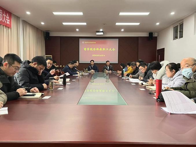 1月3日下午,商学院在逸夫楼大会议室召开全体教职工大会。学院党委书记刘振亚,党委副书记、院长殷凤春,党委副书记秦圣阳,副院长钱英、王力以及全体教职员工参加会议。会议由殷凤春主持。