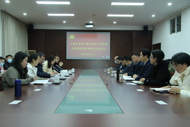 校四届党委第二轮巡察第三巡察组全体成员、商学院党委领导班子成员、全体教师出席会议。