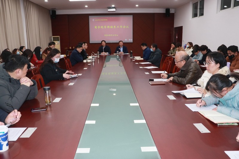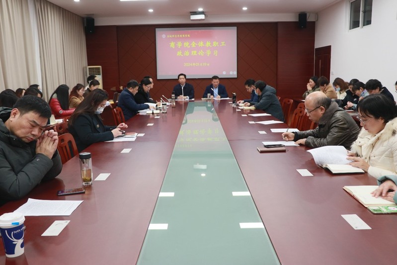 1月19日下午,商学院在逸夫楼大会议室召开学期结束工作会议。学院党委书记刘振亚,党委副书记、院长殷凤春,党委副书记秦圣阳,副院长钱英、王力以及全体教职员工参加会议。会议由殷凤春主持。