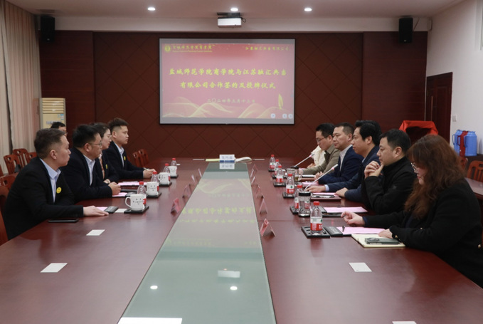 殷凤春与潘树旗分别代表双方先后签署了《盐城师范学院大学生就业基地协议书》《共建大学生青年志愿者社会实践基地协议书》及《共建大学生社会实践基地协议书》。