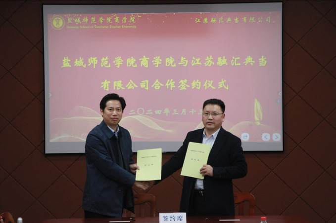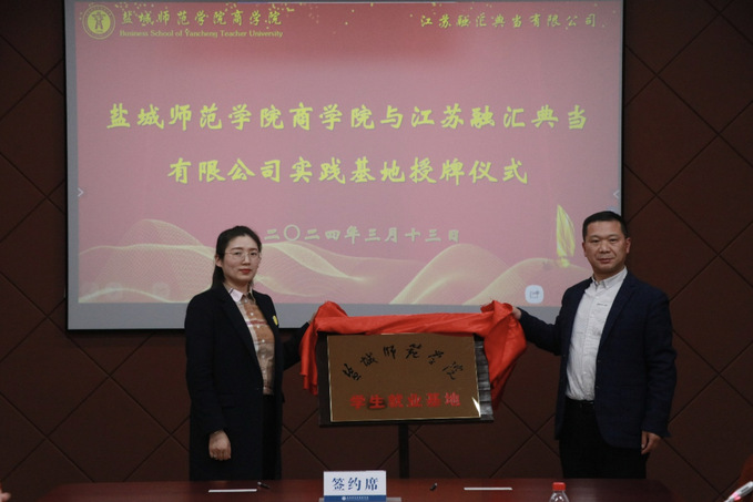 3月13日下午,江苏融汇典当有限公司董事长潘树旗、副总经理戚龙燕等一行四人来访我院,在商学院3楼大会议室举行校企合作签约仪式和实践基地揭牌仪式。学院党委书记刘振亚,党委副书记、院长殷凤春,党委副书记秦圣阳,副院长王力,数字经济系和学工办负责人参加洽谈。仪式由秦圣阳主持。
