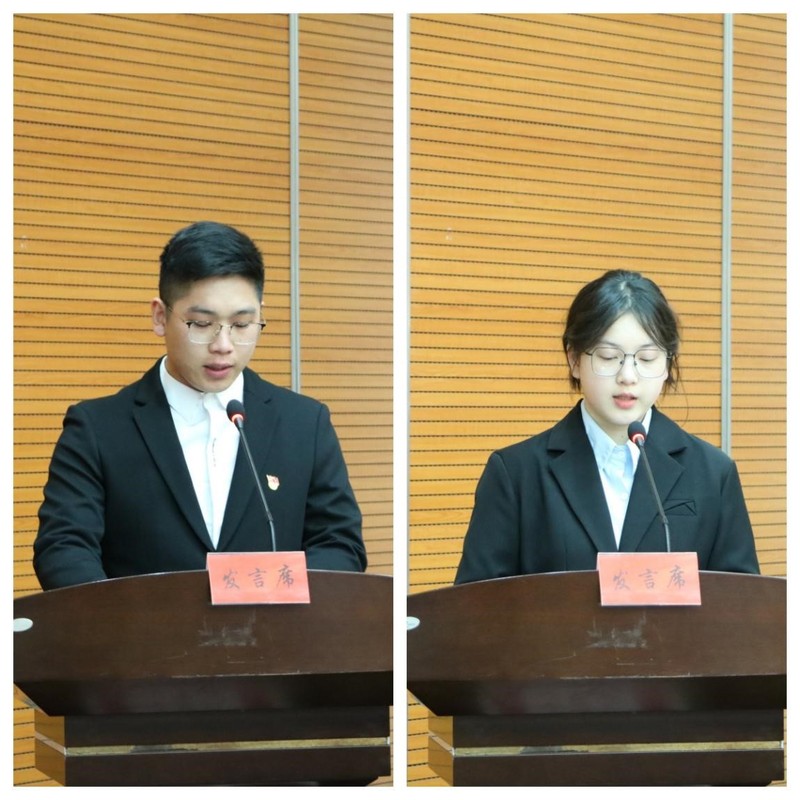 开班仪式在庄严的国歌中拉开帷幕。会计211班喻华、金工227班崔幼新分别作为学生党员代表和入党积极分子代表发言。