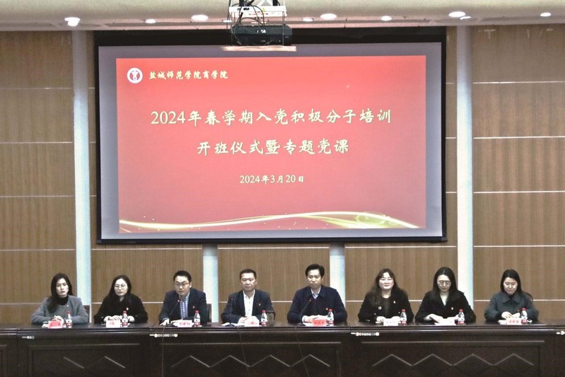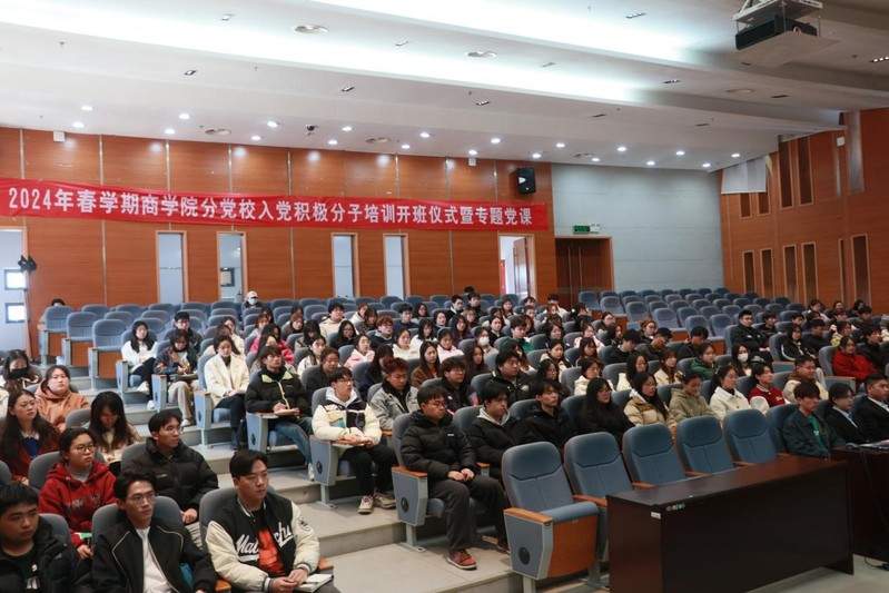 3月20日下午,商学院在新长校区图书馆学术报告厅举行入党积极分子培训开班仪式暨专题党课。商学院党委书记刘振亚,党委副书记、院长殷凤春,党委副书记秦圣阳,各学生党支部书记和全体入党积极分子出席。开班仪式由秦圣阳主持。