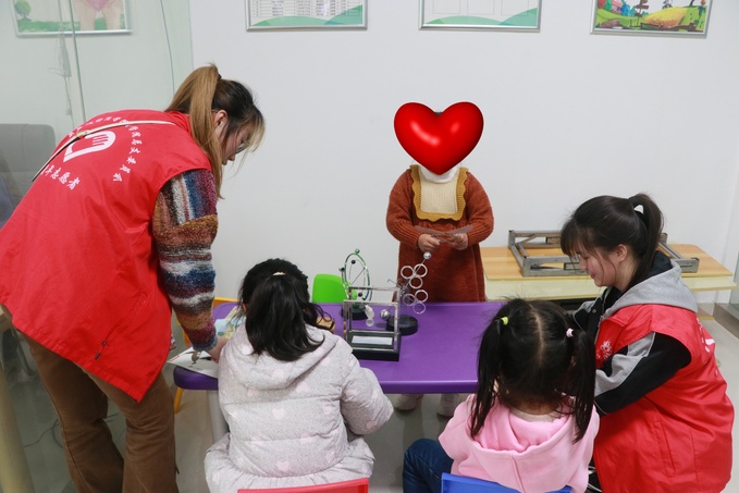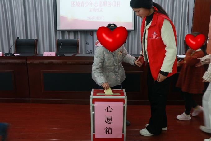 启动仪式结束后,志愿者们开展了“点亮‘微心愿’,青心向未来”首次志愿服务活动。志愿者们为困境青少年实现了第一期“微心愿”,并牵手青少年当场投递第二期“微心愿”。大学生志愿者们给困境青少年带来了精彩纷呈的宣讲、舞蹈等文艺节目。随后,志愿者们带领孩童前往社区活动中心,为其提供作业辅导、诉说心声、兴趣培养等多样式的志愿服务。