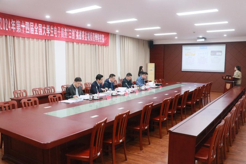 4月2日下午,第十四届全国大学生电子商务“三创赛”校内选拔赛在商学院三楼大会议室举行。学校评估处副处长刘井飞、教务处实验实训科科长崔峰,商学院党委书记刘振亚,党委副书记、院长殷凤春,副院长王力等担任评委。比赛由殷凤春主持。