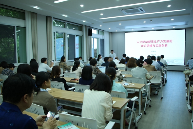 为拓宽学术视野、促进学术交流,6月5日下午,无锡学院党委常委、副校长徐军海在逸夫楼商学院二楼数字经济报告厅作题为《人才驱动新质生产力发展的理论逻辑与实践创新》的专题报告。盐城市委组织部人才工作处处长李正东,商学院党委书记刘振亚,院长殷凤春,党委副书记秦圣阳,副院长钱英、王力以及全体教职工参加学术报告会。报告会由殷凤春主持。