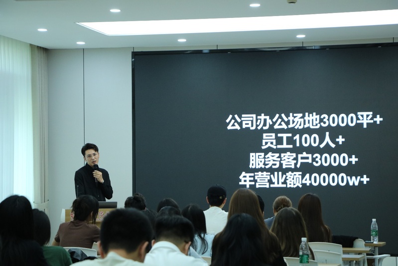 随后盐城途盛网络科技有限公司的CEO辰洋对途盛公司做了具体介绍。在过去的几年里,途盛网络科技有限公司在行业内取得了显著的成绩,赢得了广泛的赞誉和认可。他表示举办实习双选会,旨在为同学们提供一个深入了解行业前景和锻炼实践能力的平台。