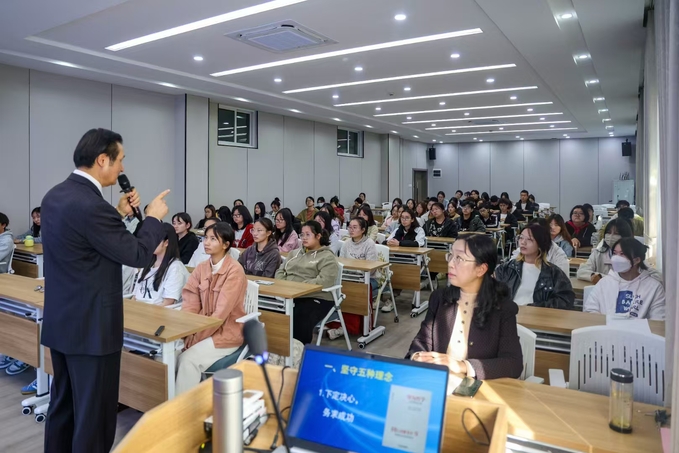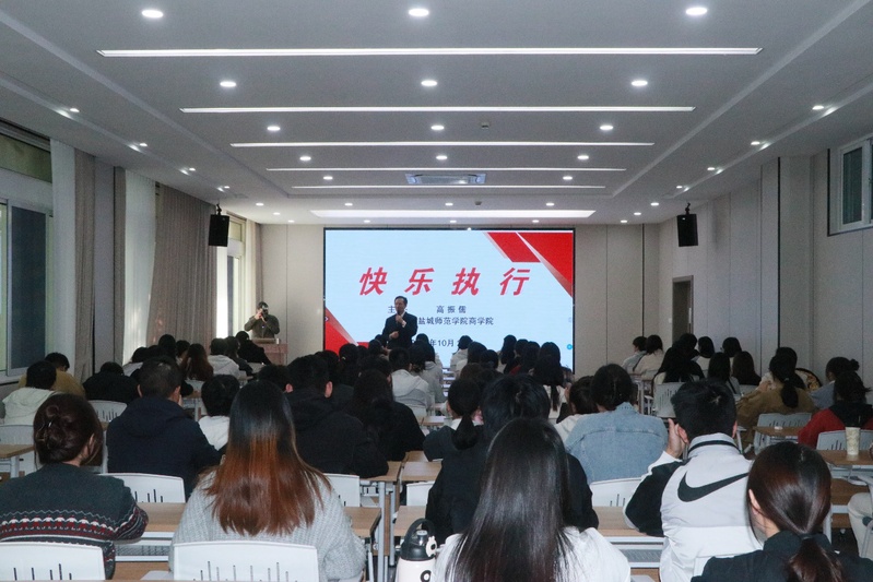 讲座中,高振儒校友以“快乐执行”为主题,从提升执行力的理念、分层提升执行力和加强执行力建设的重点这三个方面展开讲解,精心指导同学们如何提升个人执行力。他强调,良好的执行力才能成就卓越的工作品质,无论是在校园学习还是职场工作中,都要紧抓机遇,及时执行。大学生要提高执行力,以便更好地适应未来的职场生活,需要坚守下定决心、锁定目标、快速行动、始终认真、勇于担当的“五种理念”,提升高层要做领头狼、中层要做放大镜、基层不能被动等待的“三层能力”,以及要加强制度建设、作风建设、环境建设、队伍建设和文化建设。