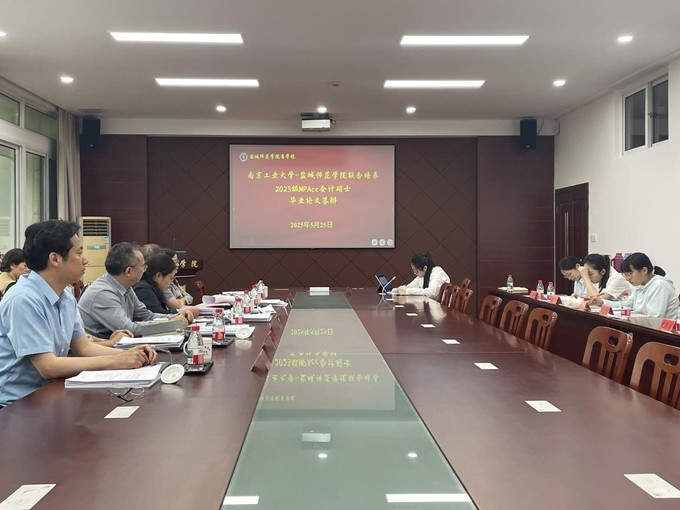 5月25日下午,南京工业大学-盐城师范学院联合培养2025届会计硕士(MPAcc)研究生学位论文答辩会在我院三楼大会议室举行。答辩委员会由盐城工学院经济管理学院宋永春教授,我校学科办主任、研究生处处长曹明,商学院、数字经济学院万良杰、刘吉双、黄利秀教授等5人组成,宋永春担任答辩组组长。2023和2024级研究生及其导师参加了会议。会议由学院院长殷凤春主持。