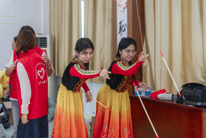 “一盏明灯照暗夜,万家灯火共团圆。”活动现场特别设置了中秋灯笼手作区、民俗趣味挑战区与传统投壶体验区,参与者可自由选择、沉浸体验。大家亲手制作的一盏盏兔子花灯,既点亮了中秋佳节的温馨祝福,也映照出“民族团结一家亲”的温暖内涵。投壶竞技与民俗游戏中,各族同胞并肩协作、笑语不断,在互动中深化了情感,凝聚了共识,共同绘就了一幅和睦共融的生动画面。