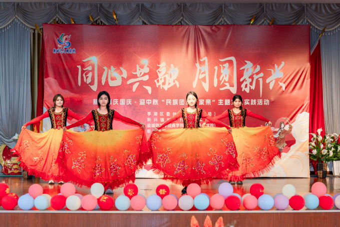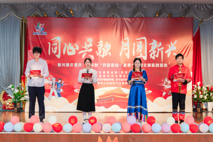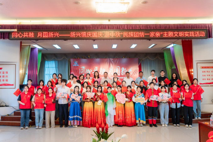 为庆祝中华人民共和国成立76周年,喜迎中秋佳节,9月28日下午,商学院(数字经济学院)联合亭湖区委统战部(民宗局)、新兴镇在同心村新时代文明实践站举办“庆国庆·迎中秋——民族团结一家亲”主题文明实践活动。来自回族、维吾尔族、柯尔克孜族、苗族、哈尼族等多个民族及师生代表60余人欢聚一堂,共叙深厚情谊,共绘民族团结美好画卷。