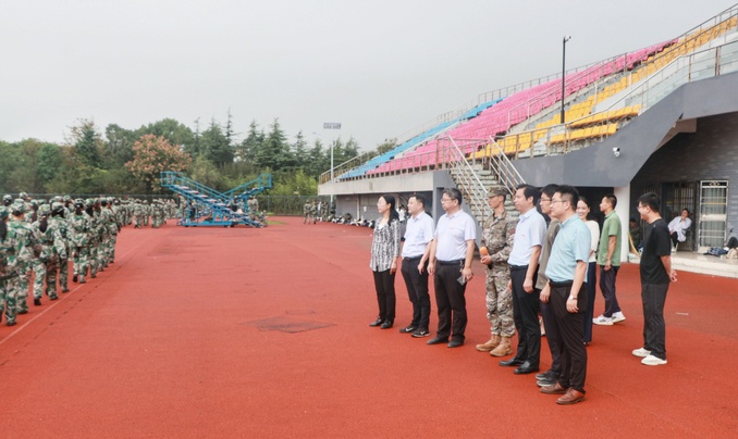 9月28日上午,商学院(数字经济学院)党委书记韩诚,党委副书记、院长殷凤春,党委副书记秦圣阳,副院长钱英,副院长王力,全体辅导员走进新长校区田径场,看望慰问2025级军训新生。