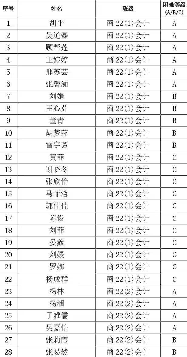 根据省教育厅等六部门关于印发《江苏省家庭经济困难学生认定工作实施办法》(苏教助(2019]1号)和《省教育厅进一步加强江苏省学生资助申请平台应用工作的通知》(苏教助函[2021]8号)及《关于做好2025-2026学年秋学期家庭经济困难学生认定与建档工作的通知》(盐师院学[2025]31号)的文件精神,经过学生本人申请、班级评议、学院审核等程序,现将2025-2026学年秋学期家庭经济困难学生认定名单公示如下。公示期为5天,自2025年9月30日-2025年10月4日。公示期间,如有异议,请向学院学生工作办公室反映,联系电话:0515-88233785,电子信箱:2017812378@qq.com,联系地址:新长校区逸夫楼303办公室。