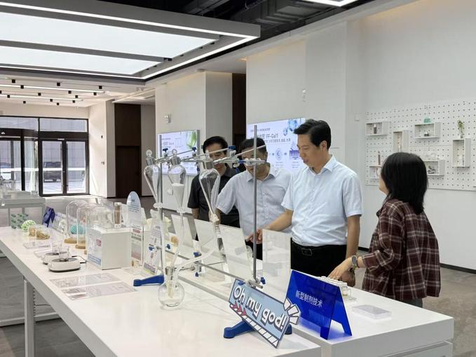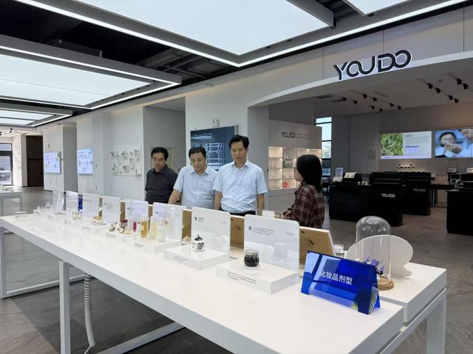 调研组还实地走访了大丰区苏港易购商贸的韩国展品馆,深入了解韩国商品在临港配套产业园贸易与营销现状。在大丰港经济开发区海洋经济产业园,办公室主任郁峰向调研组详细介绍了丰海海洋生物旗舰店的建设成果,涵盖海洋产品研发、电商直播运营体系以及海洋知识教育基地的打造情况。在江苏优度生物科技有限公司,企业负责人详细介绍了公司在海洋美容化妆产品领域的研发、生产与市场推广布局,并重点分享了在校企深度融合、协同创新方面取得的新进展。最后,在大丰港国际合作零碳产业园,大丰港经济开发区管理委员会招商投资局局长韩旻晋介绍了能碳智慧管理平台、碳资产交易平台、绿色电力证书与交易体系等核心平台建设情况。