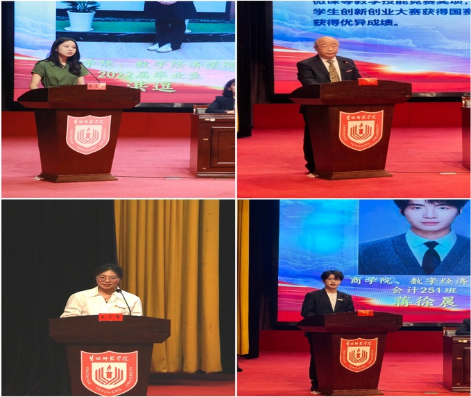 2022届优秀校友代表洪逗结合自身经历分享了大学四年的感悟。教师代表财务与会计系主任纪峰以“四个关心”勉励新生。高年级学生代表金工23(10)班郭文雪向新生分享了自己在商院的成长故事。会计25(1)班蒋徐晨作为新生代表表达了自己对未来大学生活的期盼。