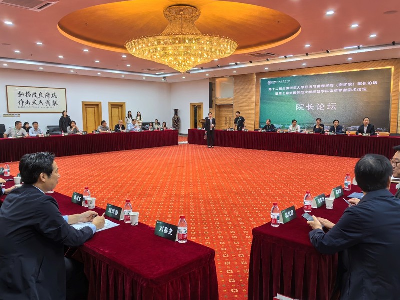 10月17-18日,第十二届全国师范大学经济与管理学院(商学院)院长论坛暨第七届全国师范大学经管学科青年学者学术论坛在南京师范大学仙林校区隆重召开。本次论坛由全国师范大学经济与管理学院(商学院)院长联席会主办,南京师范大学商学院承办。来自全国50多所师范大学的校长、商学院(经管学院)院长、教授及中青年学者200余人参加会议。我校商学院院长、中韩(盐城)产业园创新发展研究院院长殷凤春、财务与会计系副主任王黎、包振山博士参加了会议。