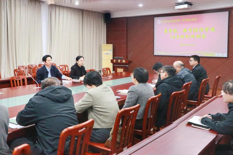 2025年10月22日下午,商学院、数字经济学院在三楼大会议室召开十月份行政工作例会。院长殷凤春,副院长钱英和各系(部)负责人参加会议。会议由殷凤春主持。