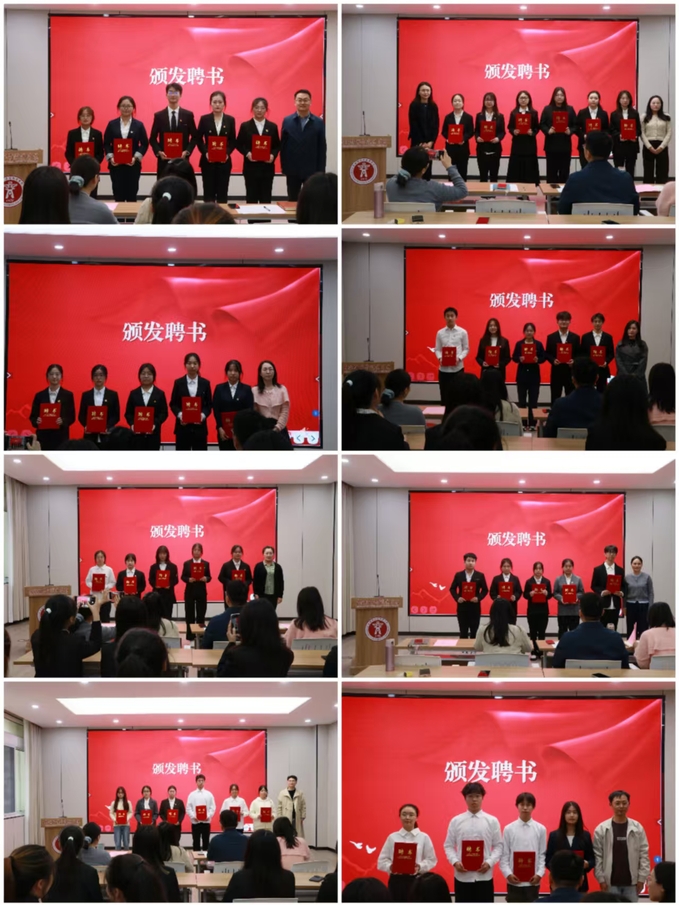 首先,学院学工办主任许彤彤宣读了新一届学生干部聘任名单。与会辅导员为各级学生干部颁发聘书。