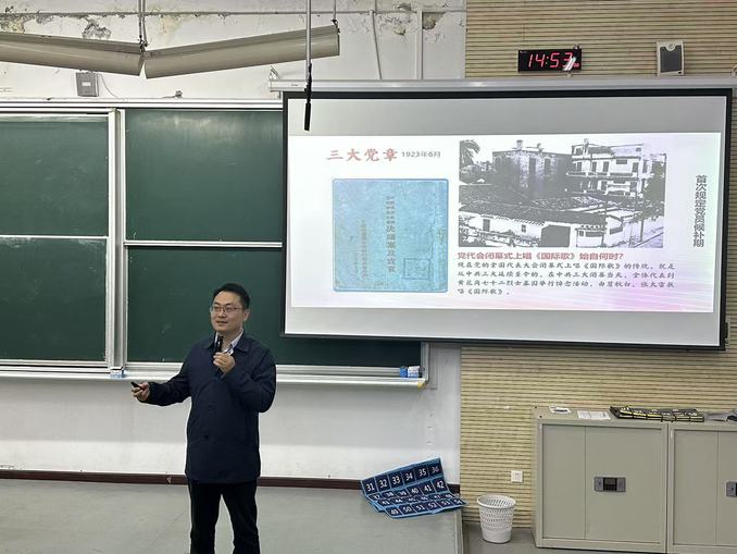 为切实加强入党积极分子的培养教育,深化对党的基本知识和光辉历程的理解,筑牢理想信念根基,11月5日下午,商学院在新C201举办2025年秋学期(总第3期)学生入党积极分子培训班。商学院党委副书记秦圣阳为全院入党积极分子讲授题为“从党章看我党成功之道”的专题党课。