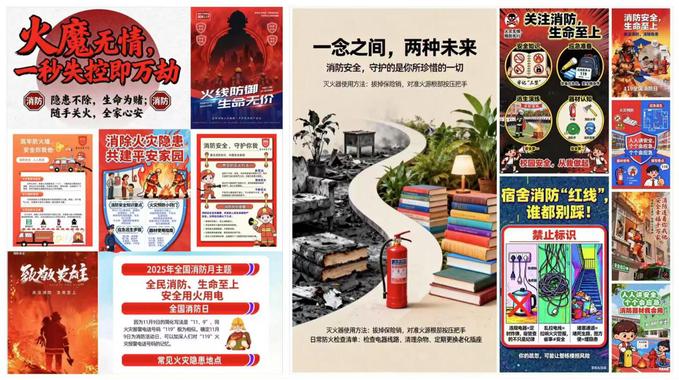 11月6日—8日,学院学工办举办消防安全主题创意作品征集比赛,活动依托AI数字技术创作设计宣传海报、消防安全知识推文以及精炼有力的宣传标语。同学们积极响应,热情参与,活动期间共收到193张AI海报作品、8篇主题推文以及57条宣传标语。这些作品主题突出,设计新颖,有效拓宽了消防安全知识的宣传途径,在院内形成了“关注消防、学习消防、参与消防”的浓厚氛围。