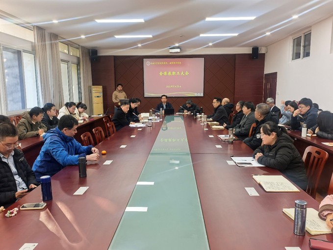 11月26日下午,商学院在逸夫楼三楼大会议室召开全体教职工大会暨政治理论学习会。学院党政领导班子及全体教职员工参加会议。会议由学院党委副书记、院长殷凤春主持。