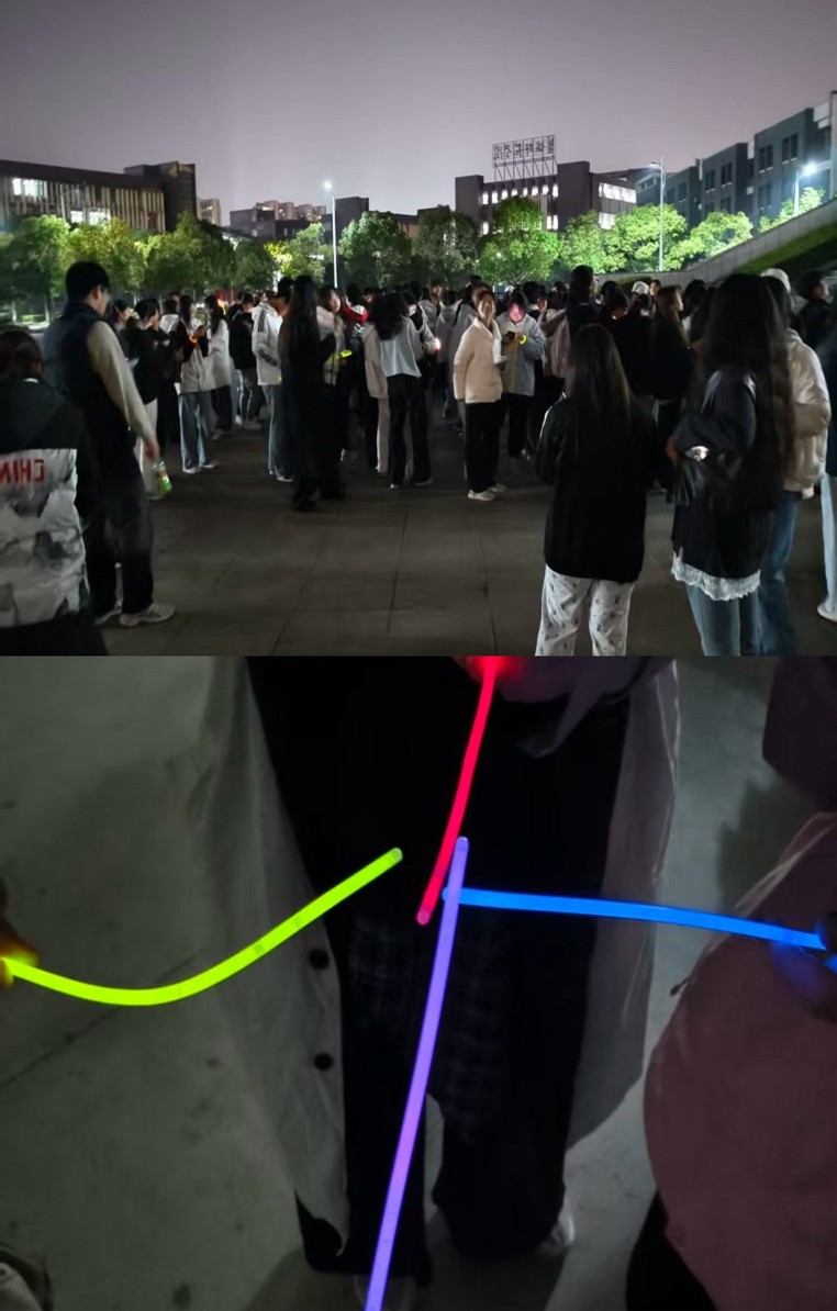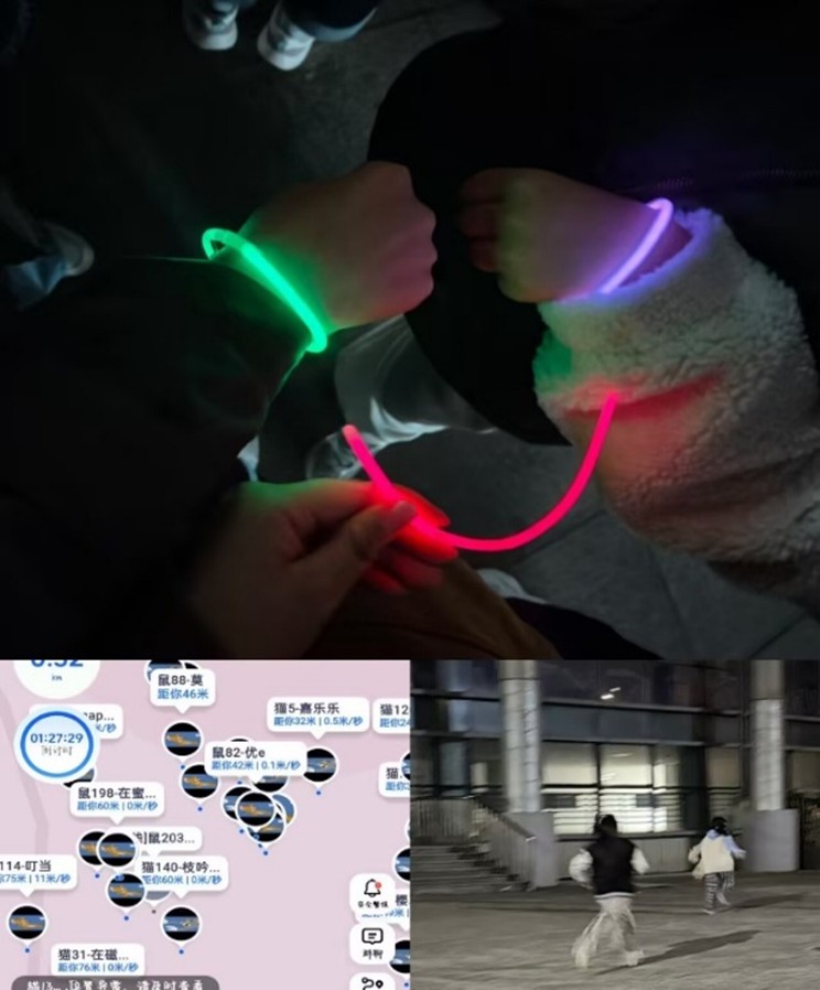 18:30活动正式启动,参赛同学抽签确定“猫”“鼠”身份后,Jerry阵营开启5分钟逃跑倒计时,随后“猫鼠追逐战”打响。“鼠”队灵活躲避、“猫”队默契围堵,荧光棒在夜色中闪烁,欢声笑语遍布校园,最终Jerry阵营靠出色协作与应变获胜。学子们在奔跑中尽情释放压力,在互动中收获欢笑,身份转换与神秘角色的巧妙设计,让活动充满未知乐趣,更让大家在默契配合中感受团队协作的魅力。