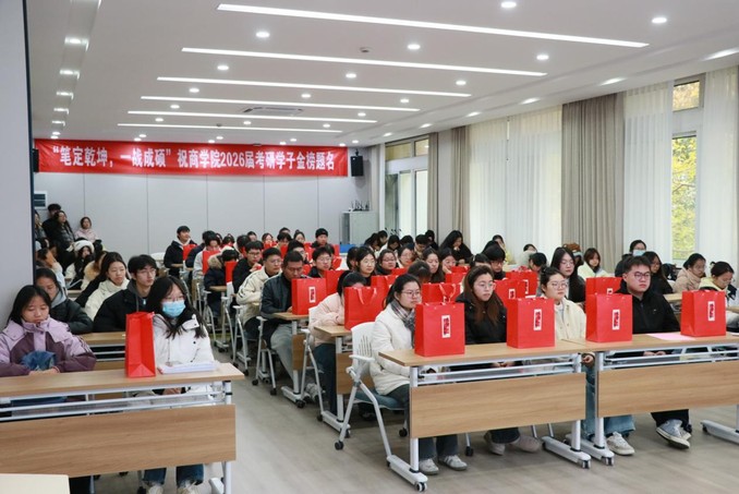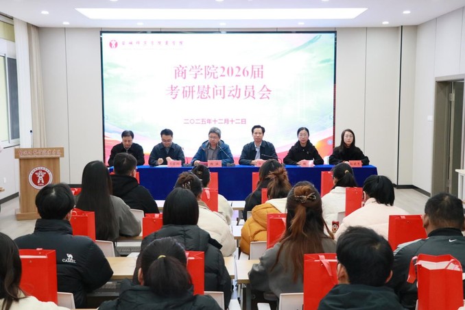12月12日上午,商学院在逸夫楼二楼李想数字经济报告厅举办2026届考研学子慰问动员会。学院党政领导、毕业班辅导员、考研学生代表参加会议。会议由学院党委副书记秦圣阳主持。