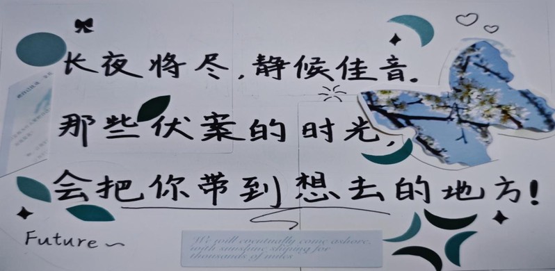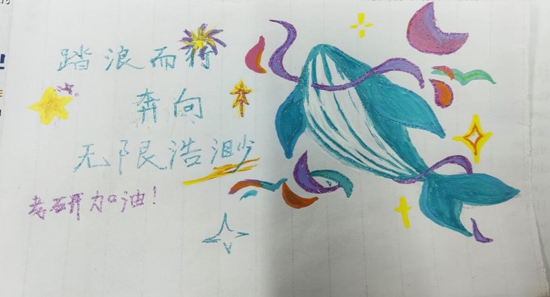 本次活动以“传递祝福、凝聚力量”为核心,创新采用手写明信片与暖心视频两种形式,让祝福更具温度与纪念意义。活动中,同学们踊跃参与,或精心挑选明信片,用真挚的文字写下对考研学子的鼓励与期许,部分同学还通过绘画、粘贴装饰贴纸等创意方式,为祝福增添独特色彩;或录制时长不少于30秒的祝福视频,以洪亮的声音、得体的形象,传递“研途有你,试必成功”的美好祝愿。一张张满载心意的明信片、一段段温暖人心的视频,汇聚成一股股暖流,为奋战在备考一线的学子注入了坚定的精神力量。