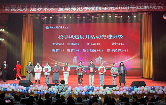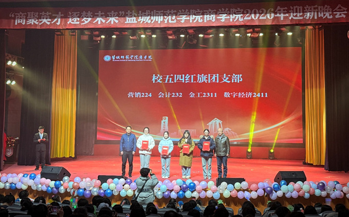 12月30日晚,商学院在新长校区大学生活动中心举行“商聚英才 逐梦未来”2026年迎新晚会。商学院全体领导班子成员、系主任,全体辅导员,教师代表和学生代表500余人观看了晚会。
