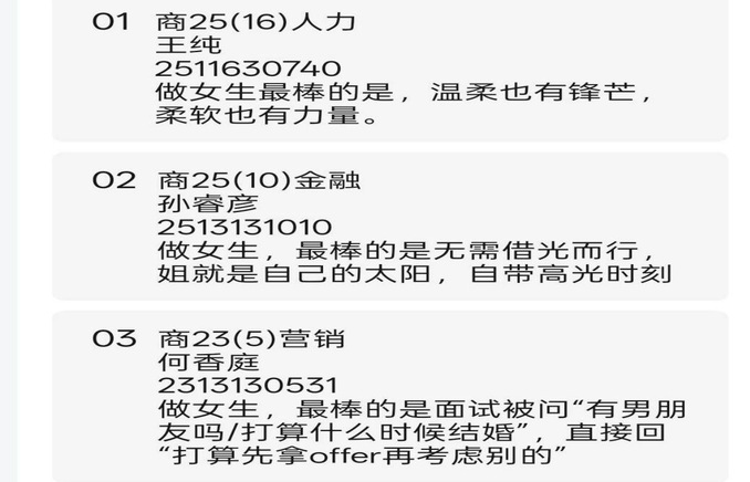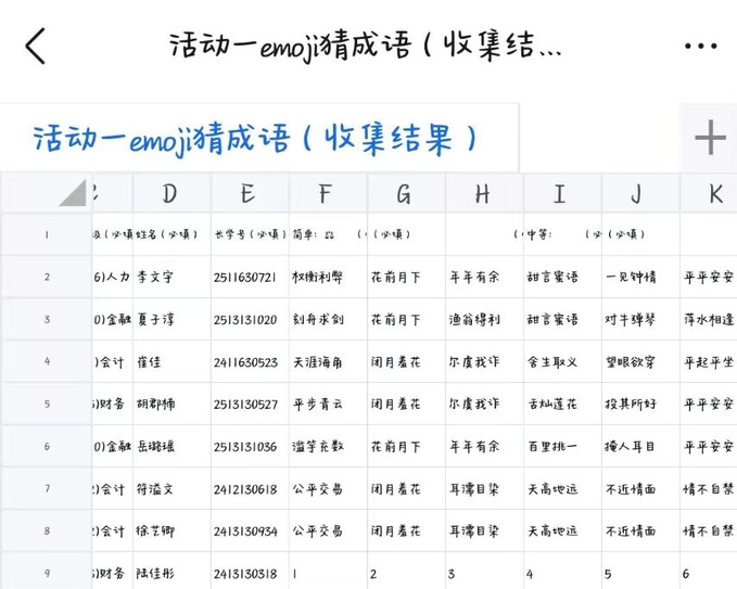 本次活动围绕“emoji猜成语”“夸夸不重样”和“句子补全大比拼”三个环节展开。在“emoji猜成语”环节中,同学们根据表情符号展开联想,纷纷给出“闭月羞花”“亭亭玉立”“平平安安”等答案,在互动中感受语言文化的趣味与魅力;在“夸夸不重样”活动中,同学们用“温柔坚定”“元气满满”“勇敢自信”“清醒独立”等词语表达对女性的赞美与祝福,展现出大家对女性多元魅力的理解与认可。此外,在“句子补全大比拼”环节中,同学们围绕“做女生,最棒的是______”展开创意表达,“无需借光而行,自带光芒”“不被定义,只做自在的自己”等回答,传递出积极自信的青春态度。