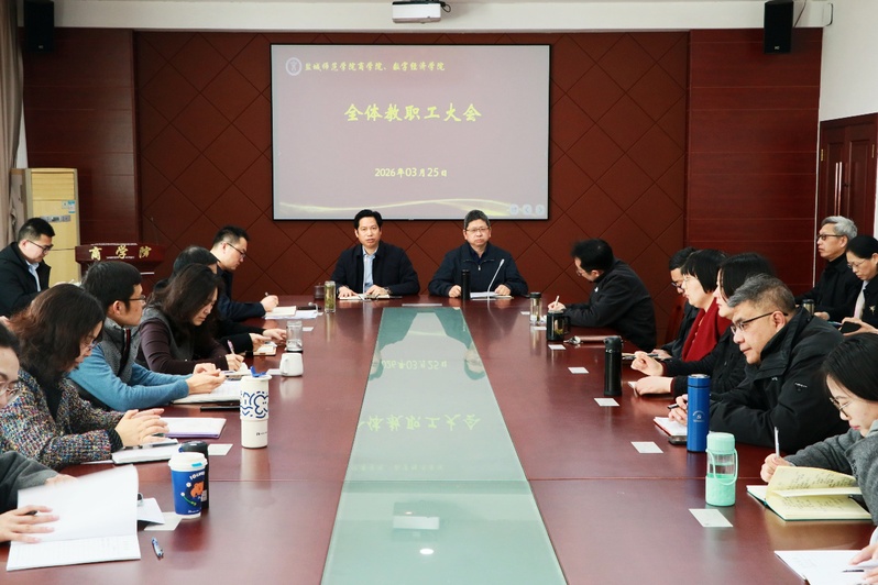 3月25日下午,商学院在逸夫楼三楼大会议室召开全体教职工大会暨政治理论学习会。学院党政领导班子及全体教职员工参加。会议由学院党委副书记、院长殷凤春主持。