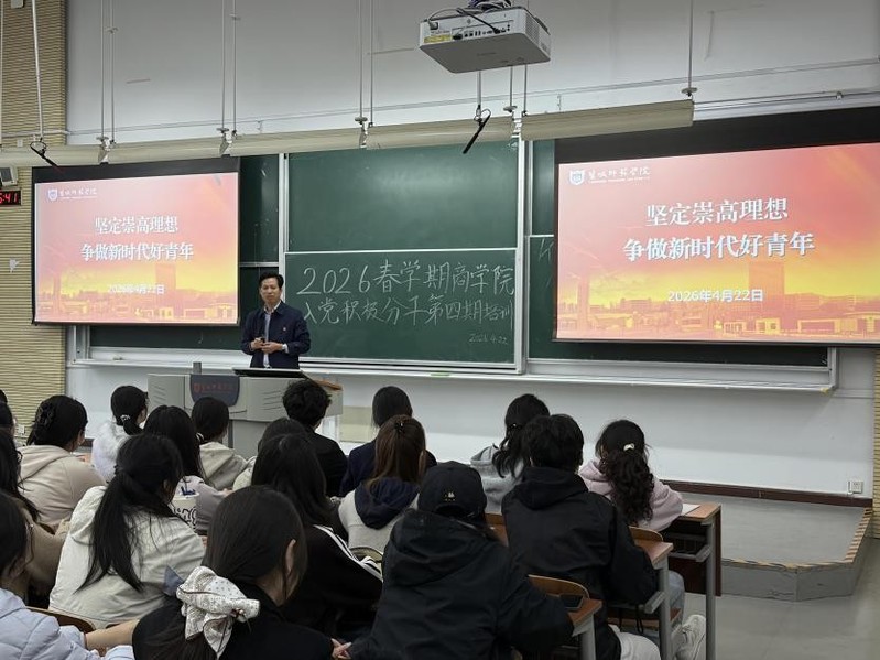 为切实加强入党积极分子的培养教育,引导其端正入党动机、筑牢理想信念根基,4月22日下午,商学院在新长校区公共教学楼C102举办2026年春学期(总第4期)入党积极分子培训班。本次党课由商学院党委副书记、院长殷凤春主讲,全体入党积极分子参加学习。